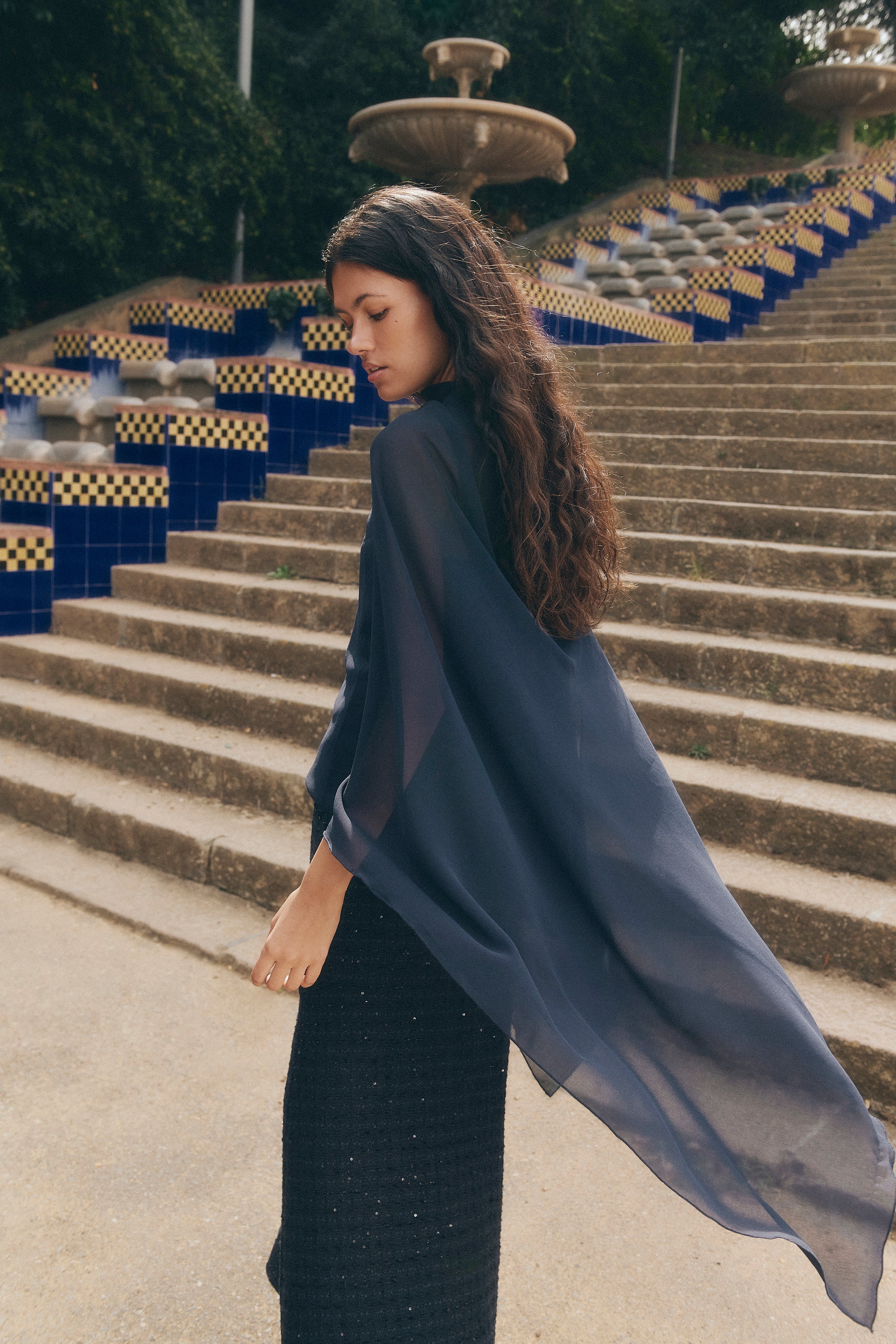 Made from ultra-soft gauze with subtle transparency, it offers graceful movement while gently covering arms, back, or neckline—perfect for transitioning from church to dinner without hiding your outfit.