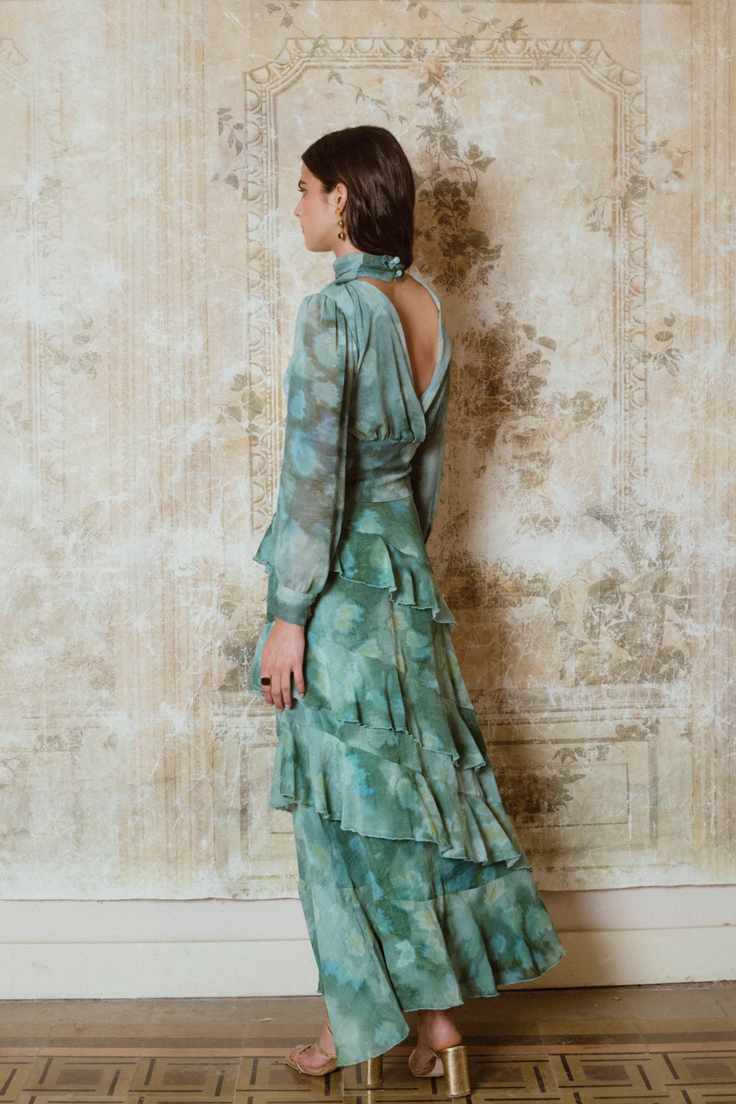 The Emerald blouse pairs perfectly with our semi-transparent aqua green cape and teal mohair cape.Ā